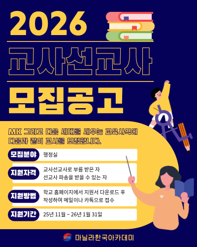 학생들이 확고한 한국인의 정체성과 기독교 신앙의 전통을 이어 받아, 하나님 나라의 성숙한 시민으로 자라가도록 돕습니다.